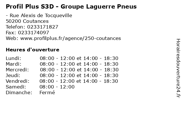 | Lundi | 08:00-12:00 et 14:00-18:30 |