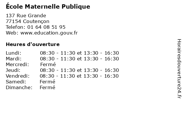 | Mardi | 08:30-11:30 et 13:30-16:30 |