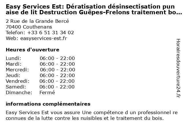| Samedi | 06:00-22:00 |