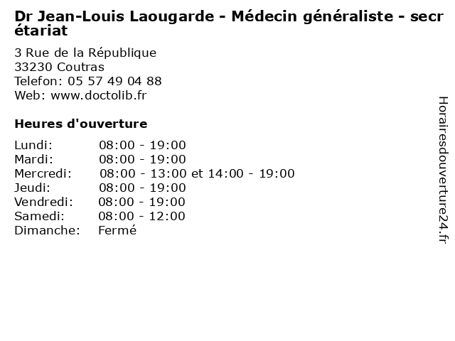 Termes de recherche pour Dr Jean-Louis Laougarde - Médecin généraliste - secrétariat:jean, louis, med, medecine, secretariat, traitement, généraliste, docteur, médecin, consultation, dr, laougarde |