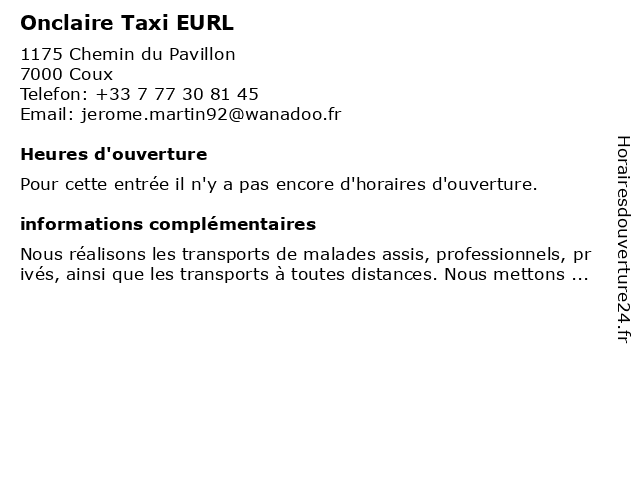 | Appeler Onclaire Taxi EURL | |