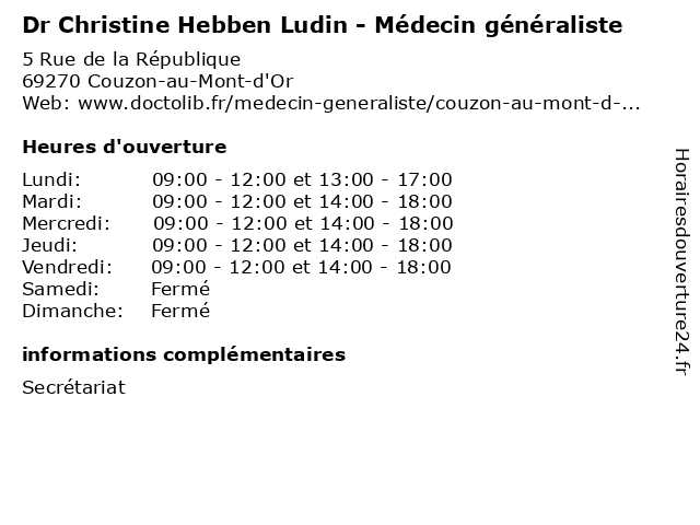 | Mardi | 09:00-12:00 et 14:00-18:00 |