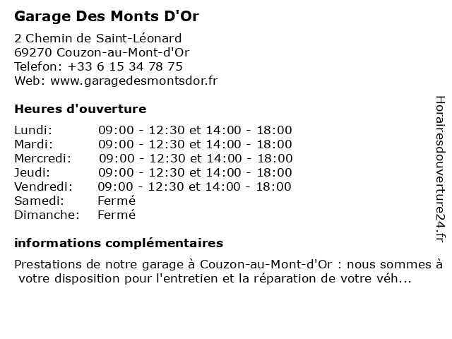 | Lundi | 09:00-12:30 et 14:00-18:00 |