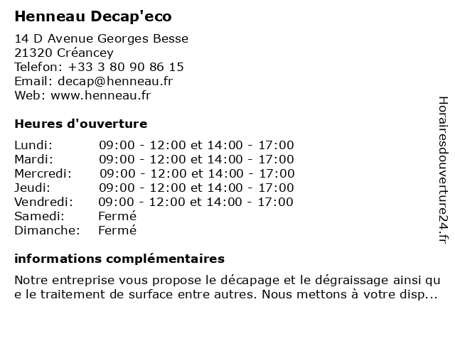 Termes de recherche pour Henneau Decap'eco:henneau, decap'eco |
