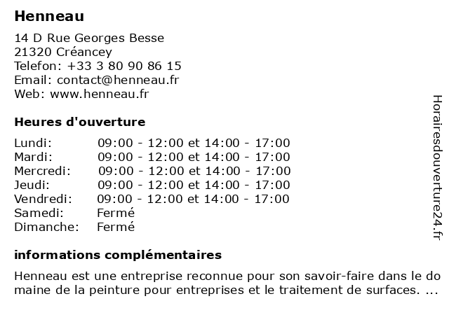 1 Henneau Decap'eco (Distance: 0,04 km)14 D Avenue Georges Besse, 21320 Créancey decap'eco, henneau