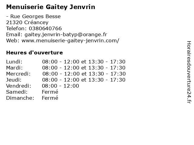 | Lundi | 08:00-12:00 et 13:30-17:30 |