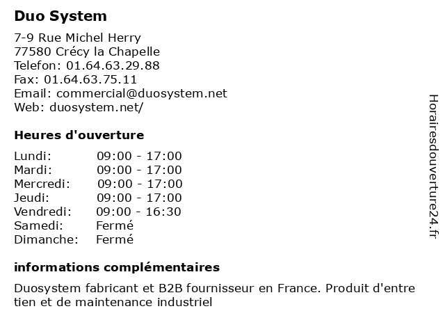 1 Automotive System Repair (Distance: 10,99 km) 11 Rue Louis Fournier, 77100 Meaux automobile, automotive, carrosserie, concessionnaire, entretien, garage, repair, réparation, system 4 Pro-Duo (Distance: 18,40 km) 17 Avenue de lingenfeld, 77200 Torcy approvisionnement en produits d'hygiène personnelle, drugstores, duo, magasin d'articles de coiffure, magasin de produits cosmétiques, pro 5 Bref Service IDF Est (Distance: 11,35 km) 96 rue du Faubourg St Nicolas, 77100 Meaux agence, bref, emplois, est, généraux, idf, maintenance, service, services, électricité 6 Hydrozone (Distance: 11,62 km) 76 rue Croix St Loup Prolongée, 77100 Meaux air, culture chamber, cuttings, fertilizer, hydrozone, irrigation system, light, packs |
