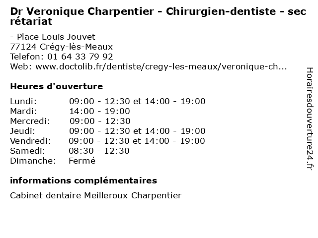 | Lundi | 09:00-12:30 et 14:00-19:00 |