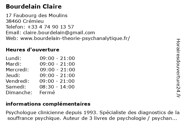 | Lundi | 09:00-21:00 |