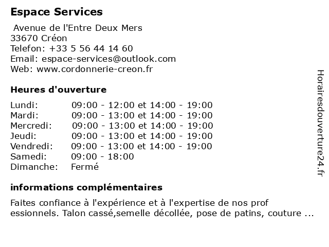 | Lundi | 09:00-12:00 et 14:00-19:00 |