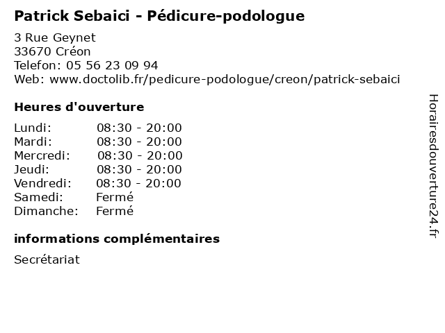 | Lundi | 08:30-20:00 |