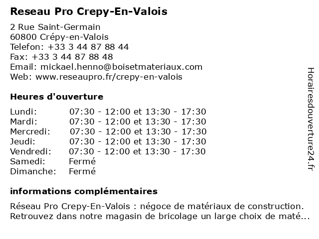 | Lundi | 07:30-12:00 et 13:30-17:30 |