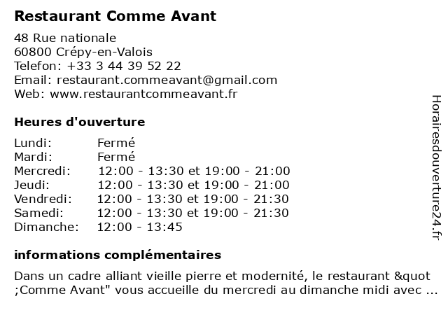 | Lundi | Fermé |