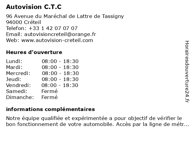 1 Autovision / DLG CONTROLE (Distance: 3,08 km) 71 Avenue Gambetta, 94100 Saint Maur des Fossés autovision, centre, controle, des stations, dlg, mesure de la pollution, technique 2 Autovision - Auto Bilan Valenton (Distance: 5,62 km) 12 Place Henri Moissan, 94460 Valenton auto, automobile, autovision, bilan, contrôle technique, maintenance, valenton 3 Autovision - Gorki Autobilan (Distance: 6,17 km) 10 Boulevad Maxime Gorki, 94800 Villejuif autobilan, automobile, autovision, contrôle technique, gorki, maintenance 4 Autovision - Auto Condorcet (Distance: 6,76 km) 10 Rue Condorcet, 94430 Chennevières sur Marne auto, autovision, centre, condorcet, controle, des stations, mesure de la pollution, technique 5 Autovision - Auto Bilan Villeneuve (Distance: 7,49 km) 128 Rue de Paris, 94190 Villeneuve-Saint-Georges auto, automobile, autovision, bilan, contrôle technique, maintenance, villeneuve 6 Autovision / A B N (Distance: 8,54 km) 1 Avenue Marcel Dassault, 93360 N3uilly Plaisance autovision, centre, contrôle, des stations, mesure de la pollution, technique |