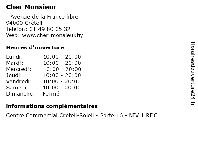 Lundi | 10:00-20:00 |