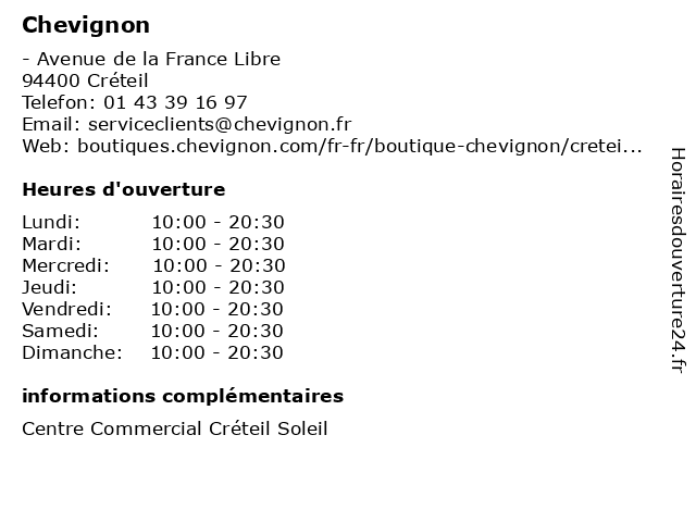 | Lundi | 10:00-20:30 |