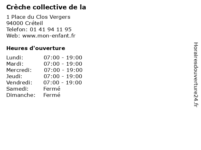 | Lundi | 07:00-19:00 |