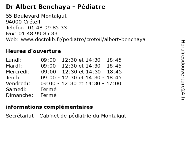 | Mardi | 09:00-12:30 et 14:30-18:45 |