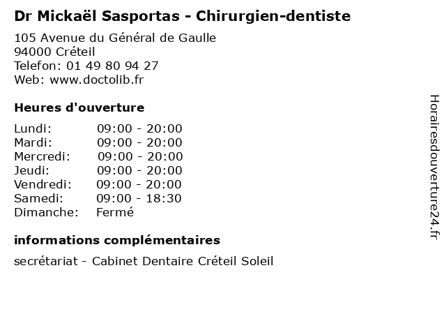 1 Dr Mickaël Sasportas - Chirurgien-dentiste (Distance: 5,75 km) 95 Avenue de la République, 94500 Champigny-sur-Marne adultes, alignement, appareil, centre, champigny, chirurgien, dentaire, dental, dentiste, dr, faciale, invisible, maxillo, mickael, mickaël, orthodontie, orthopédie, pédiatrique, santé, sasportas 2 Dr Keren Sasportas-Serraf - Chirurgien-dentiste (Distance: 0,00 km) 105 Avenue du Général de Gaulle, 94000 Créteil chirurgien, consultation, dentiste, docteur, dr, keren, med, médecin, médecine, sasportas, secrétariat, serraf, traitement 3 Dr Mickaël Saltiel - Chirurgien-dentiste (Distance: 5,43 km) 1 Rue Dupertuis, 94500 Champigny-sur-Marne chirurgien, dentaire, dentiste, dr, implantologie, mickaël, parodontologie, saltiel 5 Dr Mickaël Chekroun - Stomatologue (Distance: 8,13 km) 250 Rue de Charenton, 75012 Paris chekroun, dr, mickaël, médecin, médecine, médical, pharmaceutique, stomatologue, traitement 6 Dr Mickaël Sellam - Ophtalmologiste (Distance: 11,96 km) 11 rue Lobineau, 75006 Paris care, clinic, dentist, dr, france, health, mickaël, ophtalmologiste, sellam, service |