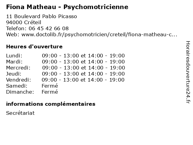 | Lundi | 09:00-13:00 et 14:00-19:00 |