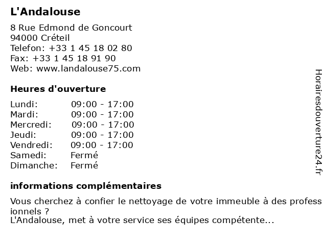 | Lundi | 09:00-17:00 |
