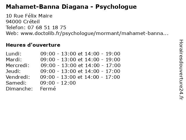 | Lundi | 09:00-13:00 et 14:00-19:00 |