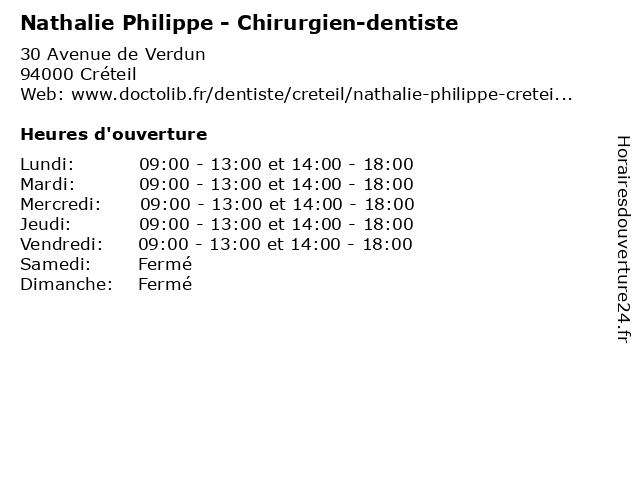 | Lundi | 09:00-13:00 et 14:00-18:00 |