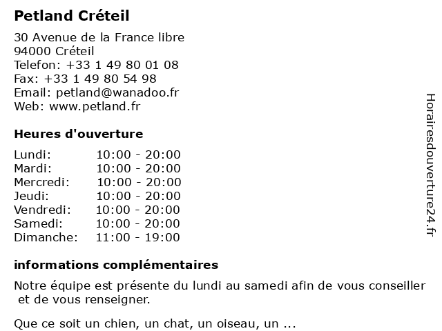 1 Petland (Distance: 0,04 km) 101 Avenue du Général de Gaulle, 94012 Creteil alimentation, beauté & santé, culture & loisirs, enfants, high-tech, maison & déco, mode, petland, restaurants |
