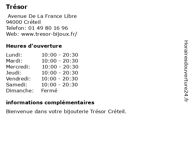 1 Trésor (Distance: 0,12 km) Avenue De La France Libre, 94000 Créteil achat de bijoux, bijoutier, création de bijoux, expertise en bijouterie, gravures sur bijoux, magasin de montres, négociant en or, réparation de bijoux, réparation de montres, trésor 2 Trésor (Distance: 6,43 km) 67-69 Avenue De Stalingrad, 94800 Villejuif achat de bijoux, bijoutier, création de bijoux, expertise en bijouterie, gravures sur bijoux, magasin de montres, négociant en or, réparation de bijoux, réparation de montres, trésor 3 Trésor (Distance: 7,26 km) 85 Route de Provins, 94436 Chennevieres accessories, beaute, bijoux, chaussures, enfant, mode femme, mode homme, restaurants, services, sport, trésor 4 Trésor (Distance: 7,73 km) 28 Avenue du General de Gaulle, 93541 Bagnolet accesoires, cafe, chausseres, enfants, homme, mode femmes, restaurant, trésor 5 TrésOr (Distance: 7,90 km) 19 Boulevard Jean Monnet, 94360 Bry-sur-Marne accesories, beaute, cafe, enfants, homme, mode femme, restaurant, trésor 6 Trésor (Distance: 9,98 km) 28 Avenue du Général de Gaulle, 93541 Bagnolet beaute, boutiques, brasserie, cache, chaussures, concorde, deco, enfants, mode femme, mode hommes, restaurant, sport, trésor |