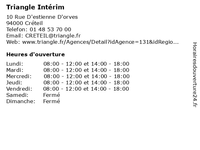 1 Triangle Intérim (Distance: 9,15 km) 27 Avenue Ledru Rollin, 75012 Paris 12 embauche, emploi, interim, intérim, recrutement, triangle 2 Triangle Intérim (Distance: 9,67 km) 18 Rue de Villeneuve, 94150 Rungis embauche, emploi, interim, intérim, recrutement, triangle 3 Triangle Intérim (Distance: 15,85 km) 11/13 Rue Anatole France, 93600 Aulnay-sous-Bois embauche, emploi, interim, intérim, recrutement, triangle 4 Triangle Intérim (Distance: 17,77 km) 2 bis Voie La Cardon, 91160 Longjumeau embauche, emploi, intérim, recrutement, triangle 5 Triangle Intérim (Distance: 18,52 km) 19 Avenue Jacques Cartier, 77600 Bussy-Saint-Georges embauche, emploi, interim, intérim, recrutement, triangle 6 Agence d'Intérim Manpower Grand Paris Environnement (Distance: 0,20 km) 53 Avenue Pierre Brossolette, 94000 Créteil agence, agence de recrutement, agence intérim, agence pour l'emploi, cabinet de recrutement, cdi, d'intérim, environnement, grand, intérim, manpower, paris, recrutement |