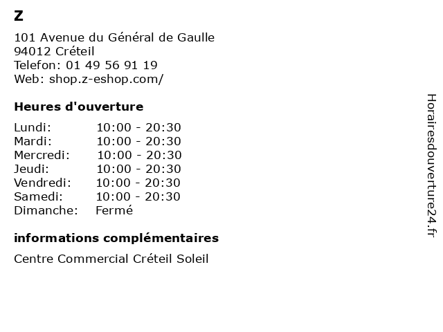 1 Z (Distance: 6,56 km) . Avenue du Luxembourg, 94531 Thais alimentation, beauté & santé, culture & loisirs, enfants, high-tech, maison & déco, mode, restaurants 2 Z (Distance: 13,62 km) 112 Rue de Maubeuge, 75010 Paris cafe, chaussures, enfants, homme, lingerie, mode femme, restaurant, service 3 Z (Distance: 18,22 km) . Ville de Bois, 91620 La Ville du Bois beaute, cafe, chaussures, enfants, hommes, lingerie, mode femmes, restaurant, sport 4 Un Jour Ailleurs (Distance: 0,00 km) 101 Avenue du Général de Gaulle, 94012 Créteil accessoires, ailleurs, jour, mode, un, vêtements 5 Tally Weijl (Distance: 0,00 km) 101 Avenue du Général de Gaulle, 94012 Créteil accessoires, mode, tally, vêtements, weijl 6 Burton of London (Distance: 0,01 km) 110 Avenue du Général de Gaulle, 94000 Créteil accessoires, burton, london, mode, of, prêt-à-porter, vêtements |