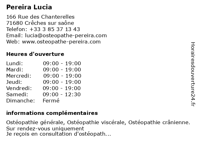 1 Marie-Christine Pereira - Sage femme (Distance: 23,40 km) 3 Rue de la Liberté, 71250 Cluny christine, consultation, docteur, femme, marie, med, médecin, médecine, pereira, sage, traitement 2 Dr Eda-Lucia Ertugrul - Médecin généraliste (Distance: 26,88 km) - Plateau d'Ouilly, 69655 Villefranche-sur-Saône consultation, docteur, dr, eda, ertugrul, généraliste, lucia, med, médecin, traitement 3 Entreprise De Nettoyage Pereira Père Et Fils (Distance: 47,27 km) 12 Avenue des Marronniers, 69270 Fontaines-sur-Saône de, entreprise, et, fils, nettoyage, pereira, père 4 La Mandoline (Distance: 47,90 km) 39 Route De Genève, 01700 Saint-Maurice-de-Beynost bar, brasserie, café, la, mandoline, manuel, pereira, restaurants 5 Chez Lucia (Distance: 48,23 km) 2 Rue Des Rosieristes, 69760 Limonest bar, bistro, bistrot, brasserie, café, chez, lucia, pub, restaurant, restauration, resto 6 Pereira Ribeiro (Distance: 48,45 km) Monsieur Horacio Pereira Ribeiro, 69140 Rillieux La Pape pereira, restaurants, ribeiro |