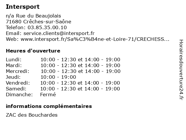 | Mercredi | 10:00-12:30 et 14:00-19:00 |
