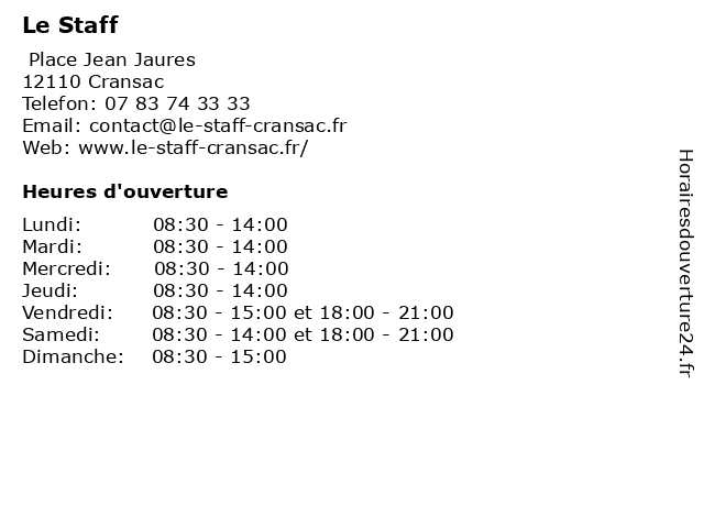 | Samedi | 08:30-14:00 et 18:00-21:00 |