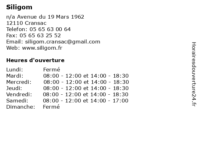 | Mardi | 08:00-12:00 et 14:00-18:30 |