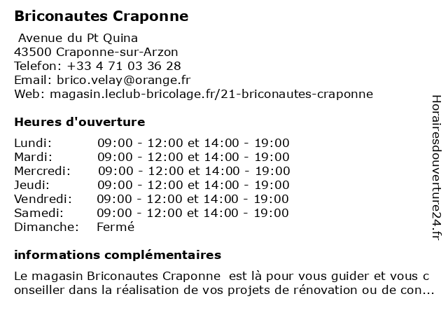 1 Les Briconautes (Distance: 30,18 km) n/a Rue du Docteur Guinard, 42680 ST MARCELLIN EN FOREZ briconautes, carpentry, decoration, electricity, garden, hardware store, les, outdoors, sanitary, tools 2 Les Briconautes (Distance: 51,54 km) n/a Le Mont, 23200 AUBUSSON briconautes, carpentry, decoration, electricity, garden, hardware store, les, outdoors, sanitary, tools |