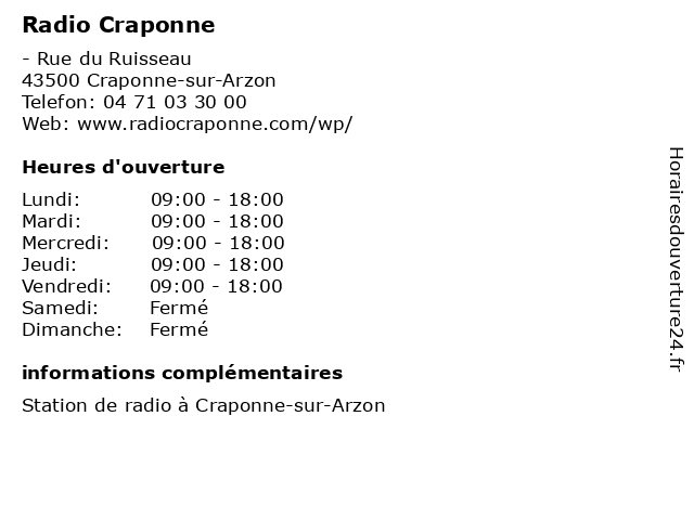 Horaires d'ouverture |
