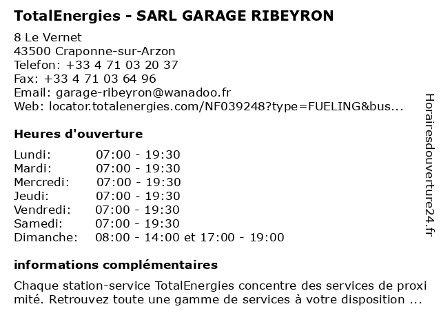 | Termes de recherche pour TotalEnergies - SARL GARAGE RIBEYRON:garage, sarl, total, ribeyron, gas station, station service, tankstelle, totalenergies |