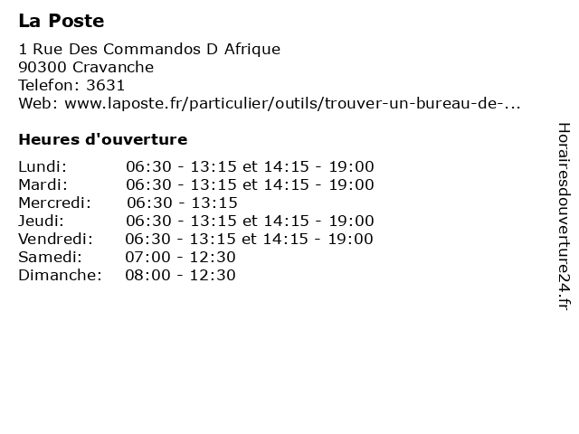 2 La Poste (Distance: 2,10 km) 1 Rue Jacques Prevert, 90850 Essert express chronopost, la, poste, réexpédition internationale 3 La Poste (Distance: 8,71 km) - Au Bourg, 70400 Chagey express chronopost, la, poste, réexpédition internationale 4 La Poste (Distance: 12,30 km) 7 Rue de Belfort, 90140 Bourogne express chronopost, la, poste, réexpédition internationale 5 La Poste (Distance: 12,42 km) 6 Rue Du Tilleul, 90150 Fontaine express chronopost, la, poste, réexpédition internationale 6 La Poste (Distance: 13,29 km) Rue de Flandres, 25200 Grand charmont agence, assurance, banque, banque postale, bureau de poste, chronopost, colis, courrier, dps, expéditions internationales, la, point, postale, poste, relais, timbres, téléphonie, ups, western union |