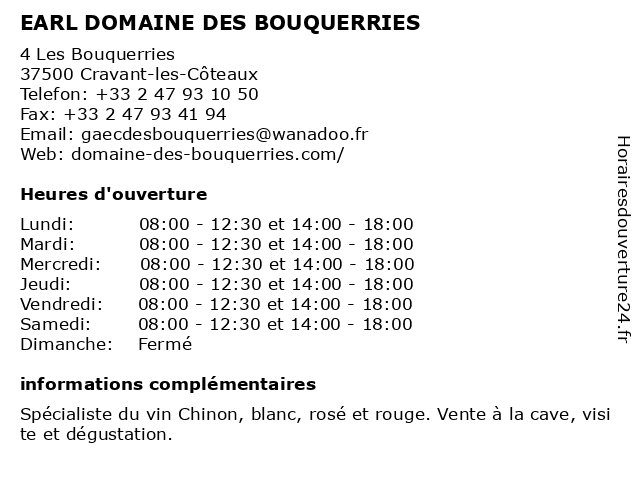 | Samedi | 08:00-12:30 et 14:00-18:00 |