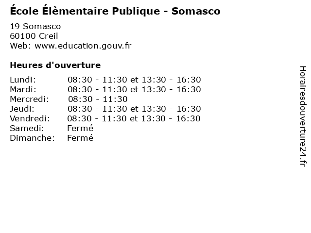 | Mardi | 08:30-11:30 et 13:30-16:30 |