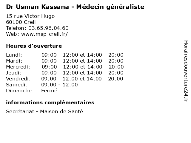 | Lundi | 09:00-12:00 et 14:00-20:00 |