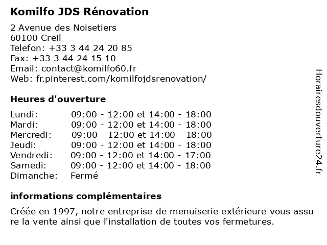 | Lundi | 09:00-12:00 et 14:00-18:00 |