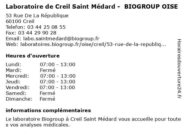 Termes de recherche pour Laboratoire de Creil Saint Médard - BIOGROUP OISE:de, saint, oise, medard, laboratoire, creil, biogroup, dépistages, laboratoire de diagnostic |