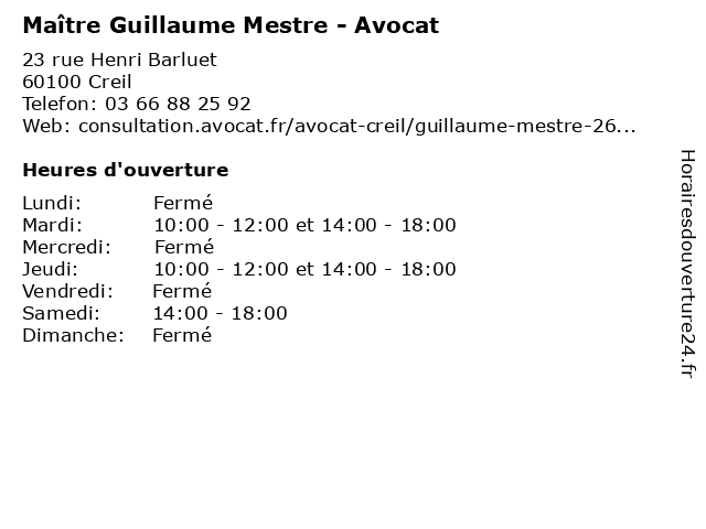 | Mardi | 10:00-12:00 et 14:00-18:00 |