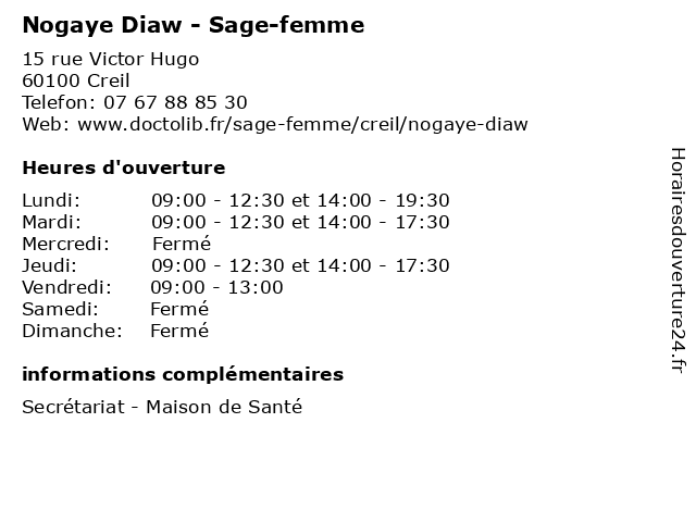 | Lundi | 09:00-12:30 et 14:00-19:30 |