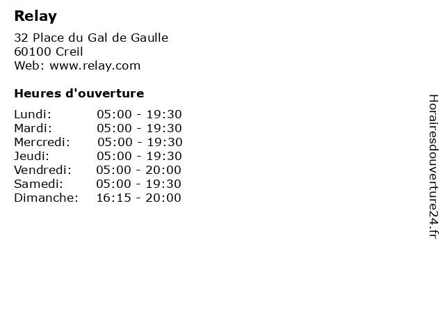 | Samedi | 05:00-19:30 |