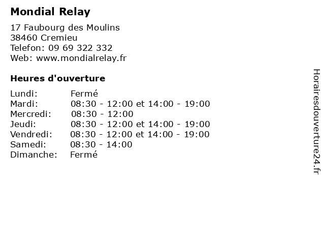 | Lundi | Fermé |