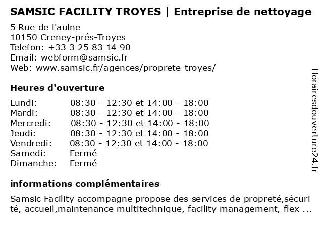 | Lundi | 08:30-12:30 et 14:00-18:00 |