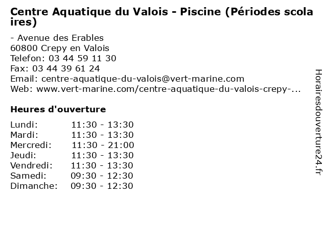 Termes de recherche pour Centre Aquatique du Valois - Piscine (Périodes scolaires):du, centre, piscine, aqua, valois, scolaires, aquatique, periodes |